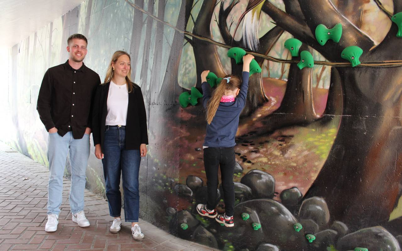 Die Unterführung zwischen dem Hochdahler Markt und den Hochdahler Arcaden in Erkrath ist neugestaltet worden. Ein buntes Wandgemälde ersreckt sich über eine Länge von rund 15 Metern. Es gibt integrierte Klettergriffe, die vor allem Kinder zu Klettertouren einladen sollen. Mit der Kombination aus Bewegung und Kunst habe die Stadt einen generationenübergreifenden Treffpunkt schaffen wollen, der alle anspricht und die Innenstadt weiter belebt, heißt es von der Stadt Erkrath. Das Projekt wird zu 70 Prozent vom Land Nordrhein-Westfalen gefördert. In den kommenden Monaten wird es weitere Projekte geben, kündigt die Stadt an.