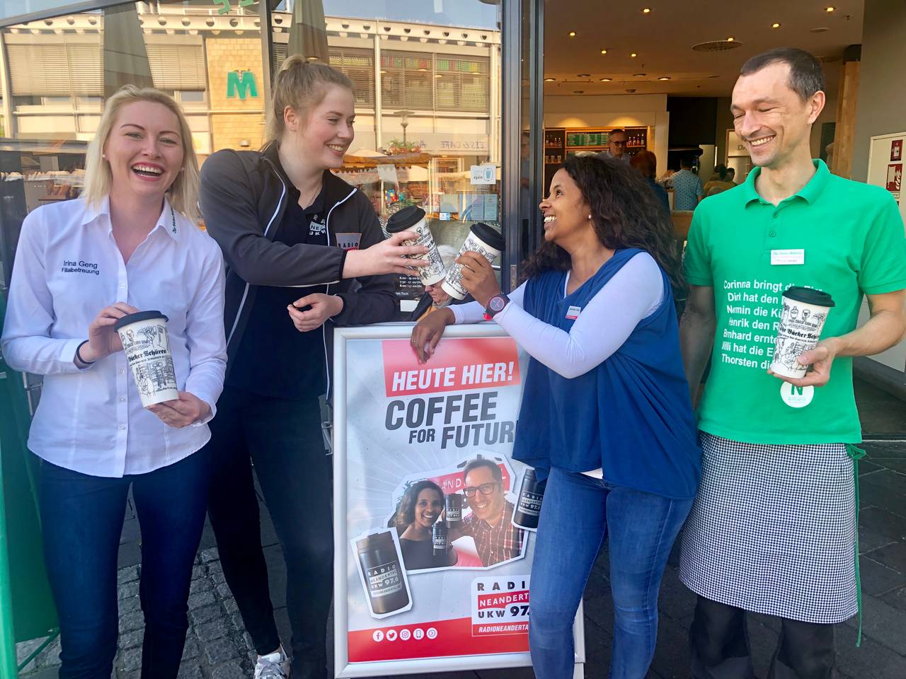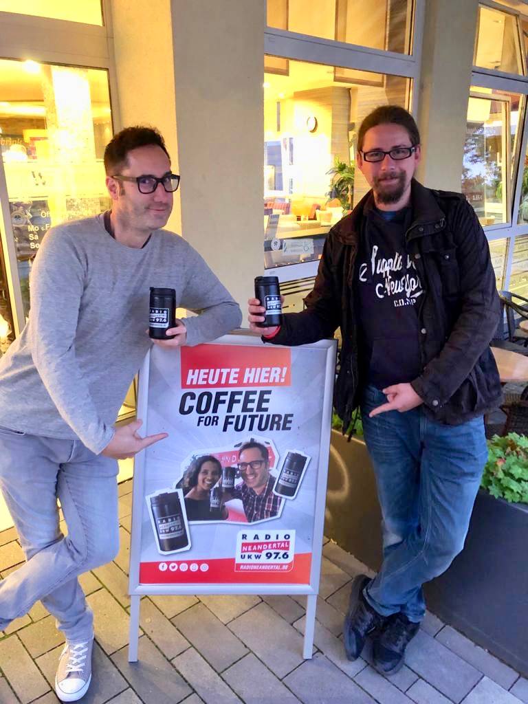 Zehn Tage, zehn Städte - kreuz und quer durch unseren Kreis Mettmann. Jenny und Robin aus der Morningshow haben jeden Morgen frischen Kaffee ausgegeben. Aber nicht einfach so, sondern in unseren nachhaltigen, wieder verwendbaren Coffee for Future Bechern. Die waren schnell schon der Mega-Renner vom Niederbergischen bis zum Rhein.