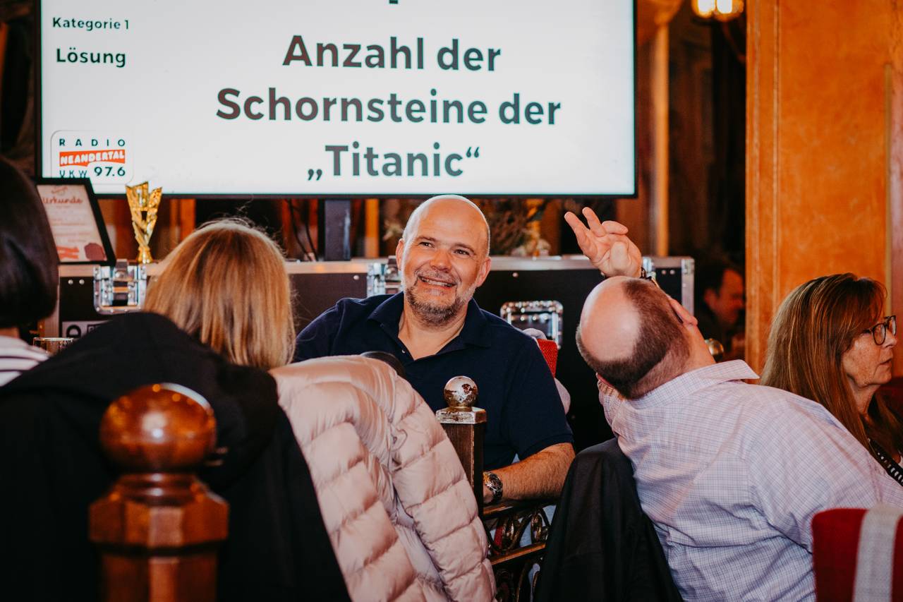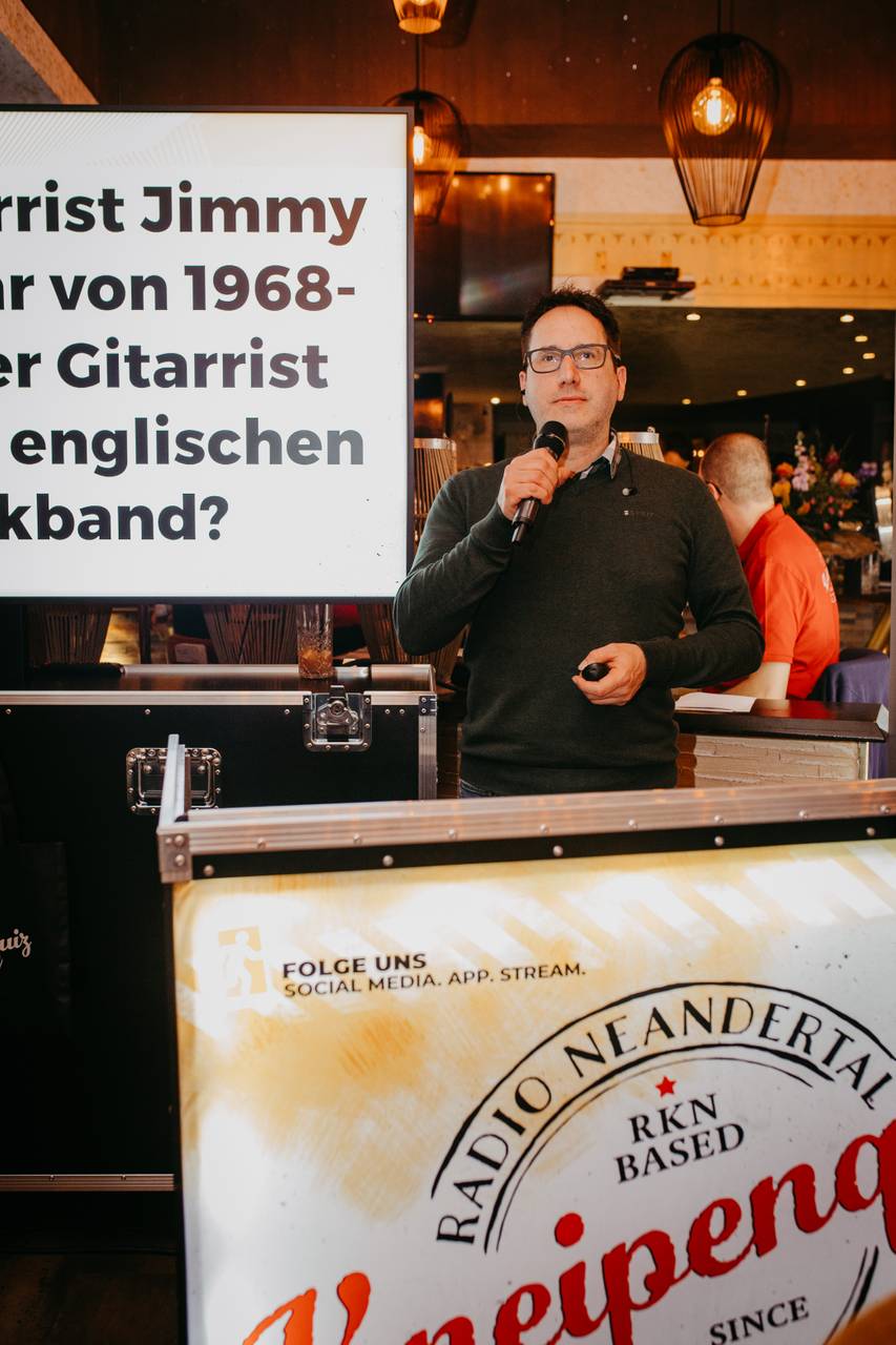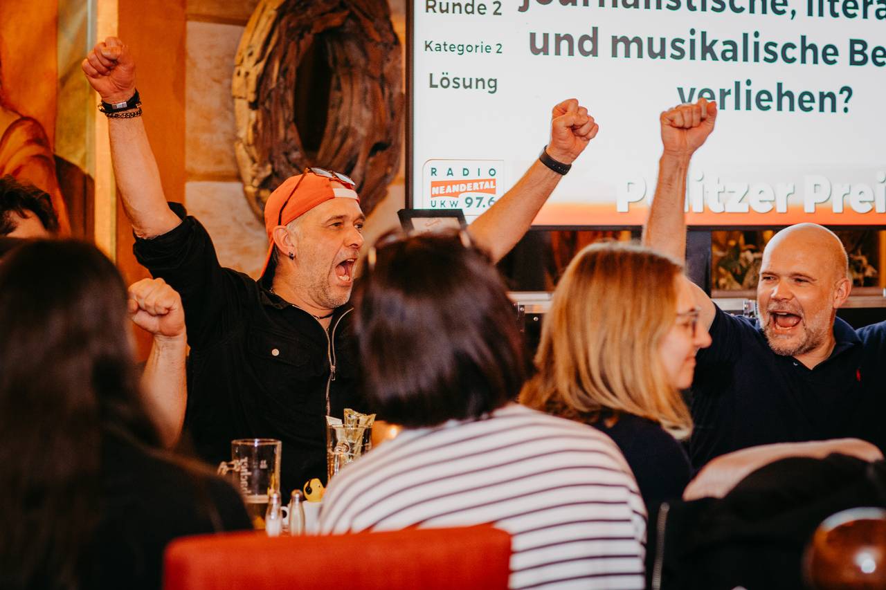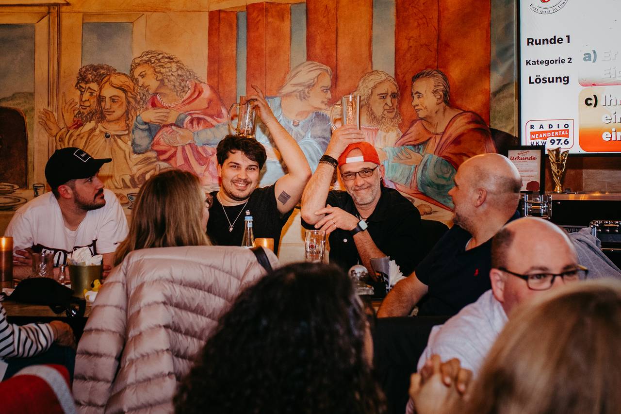 16 Teams (plus Radio Neandertal außer Konkurrenz) - und wieder jede Menge Spaß! So war das 2. Kneipenquiz, diesmal in Hilden im Restaurant 12 Apostel. Robin Lammerschop aus der Morningshow und Kneipenquiz-Moderator Tony Kaufmann hatten diesmal ganz besonders knifflige Fragen mit dabei.