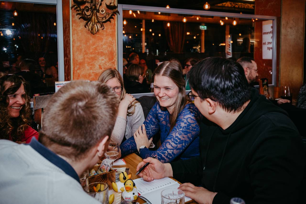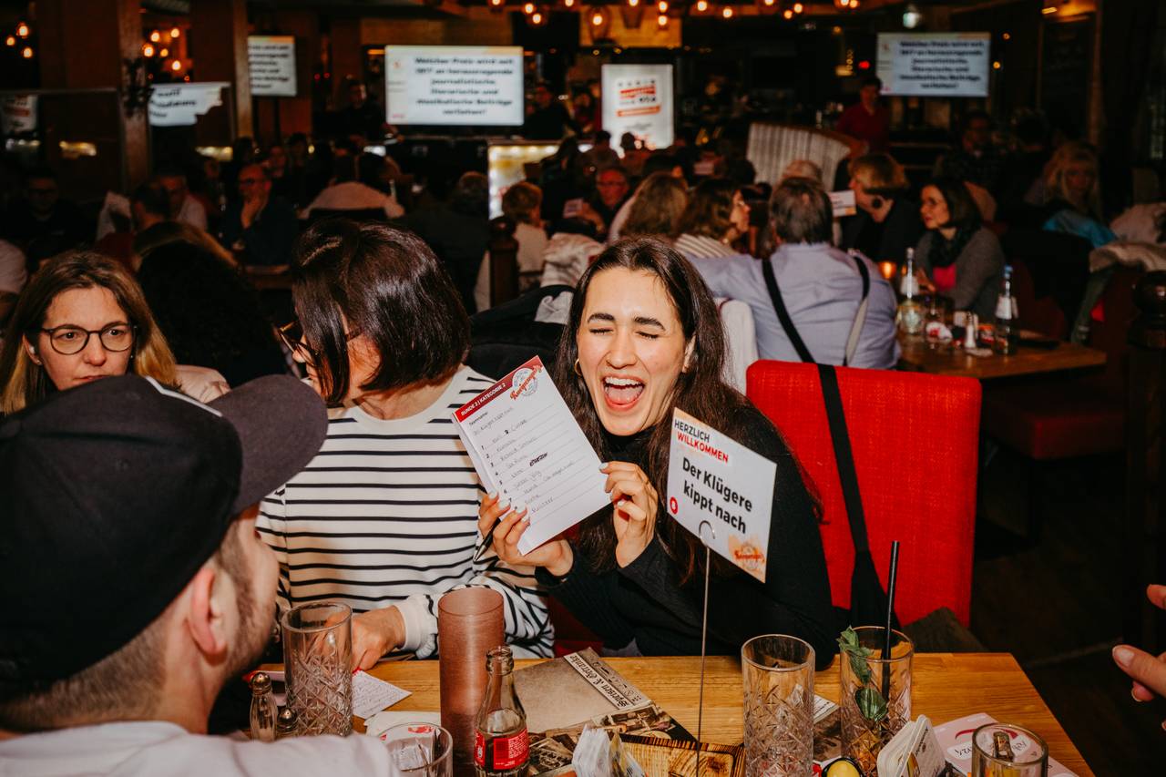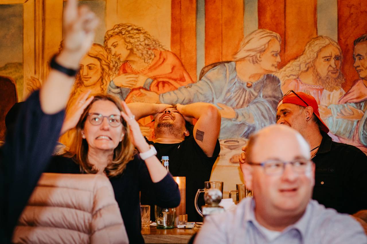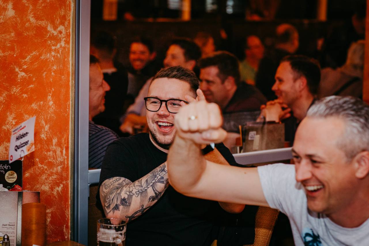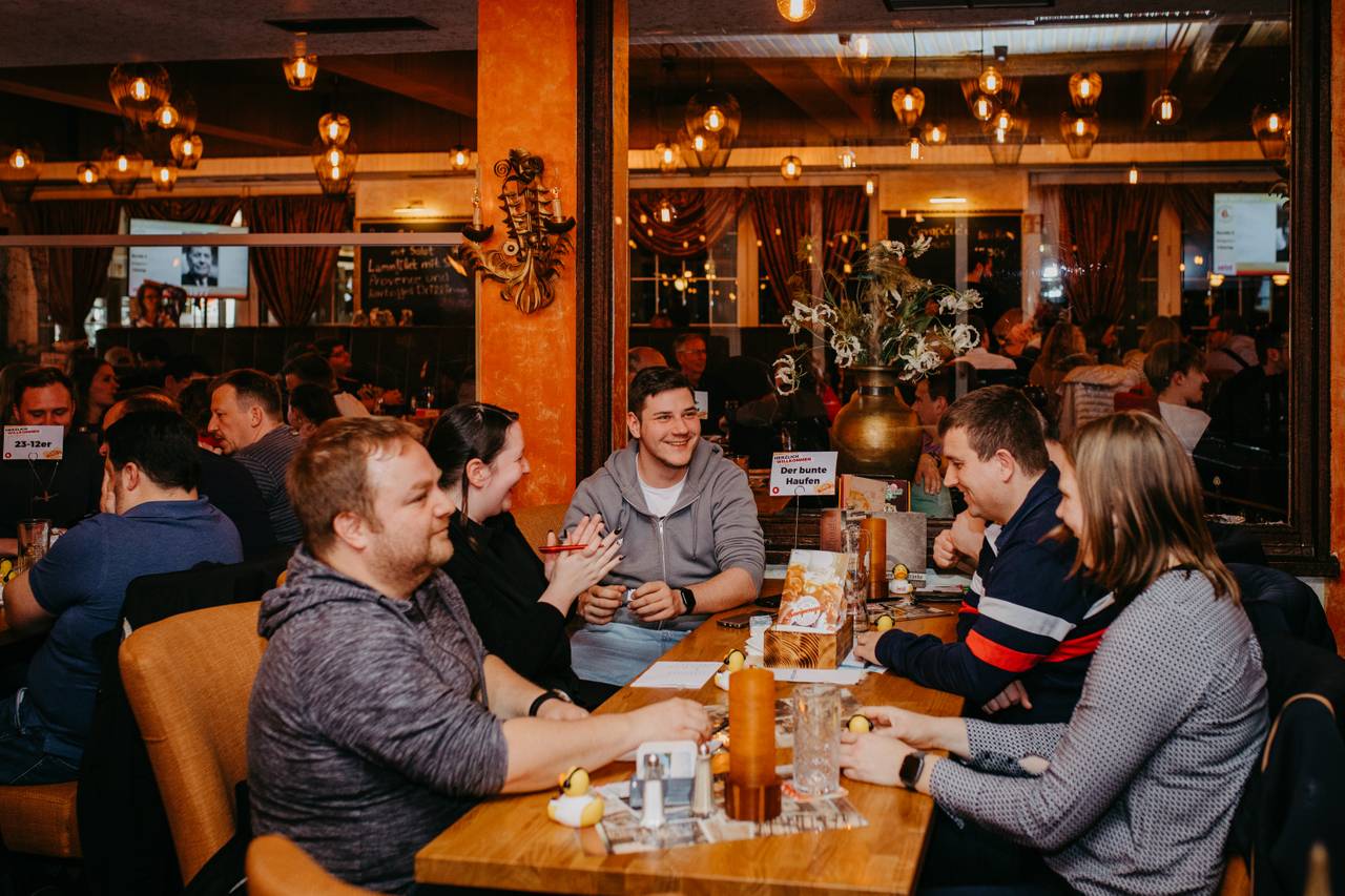 16 Teams (plus Radio Neandertal außer Konkurrenz) - und wieder jede Menge Spaß! So war das 2. Kneipenquiz, diesmal in Hilden im Restaurant 12 Apostel. Robin Lammerschop aus der Morningshow und Kneipenquiz-Moderator Tony Kaufmann hatten diesmal ganz besonders knifflige Fragen mit dabei.