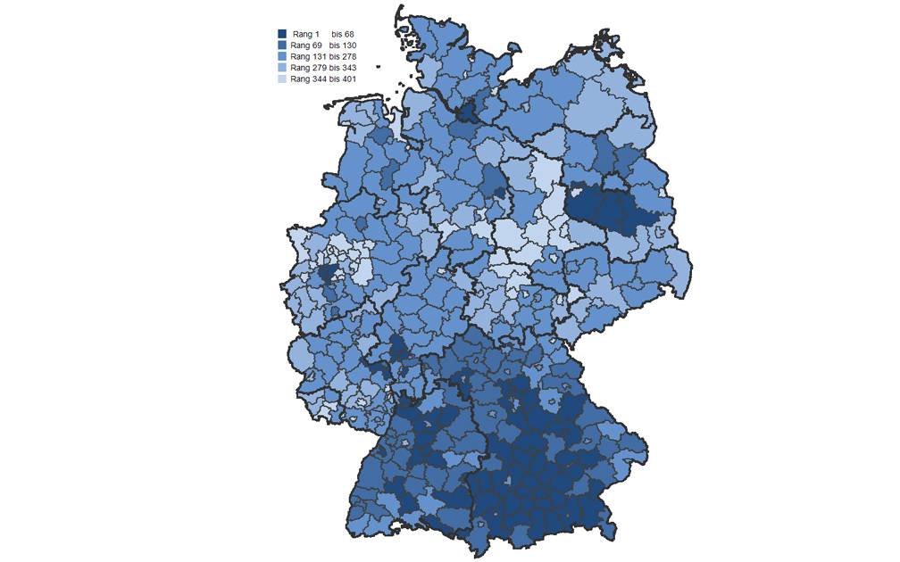 Die Forscher Vanessa Hünnemeyer und Hanno Kempermann vom Institut der Deutschen Wirtschaft haben alle 401 Landkreise und kreisfreie Städte in Deutschland unter die Lupe genommen. Ziel war es, Erfolg und Entwicklung der Regionen festzustellen. Sie unterteilten ihre Bewertungen in mehrere Bereiche: Wirtschaftsstruktur, Arbeitsmarkt und Lebensqualität.