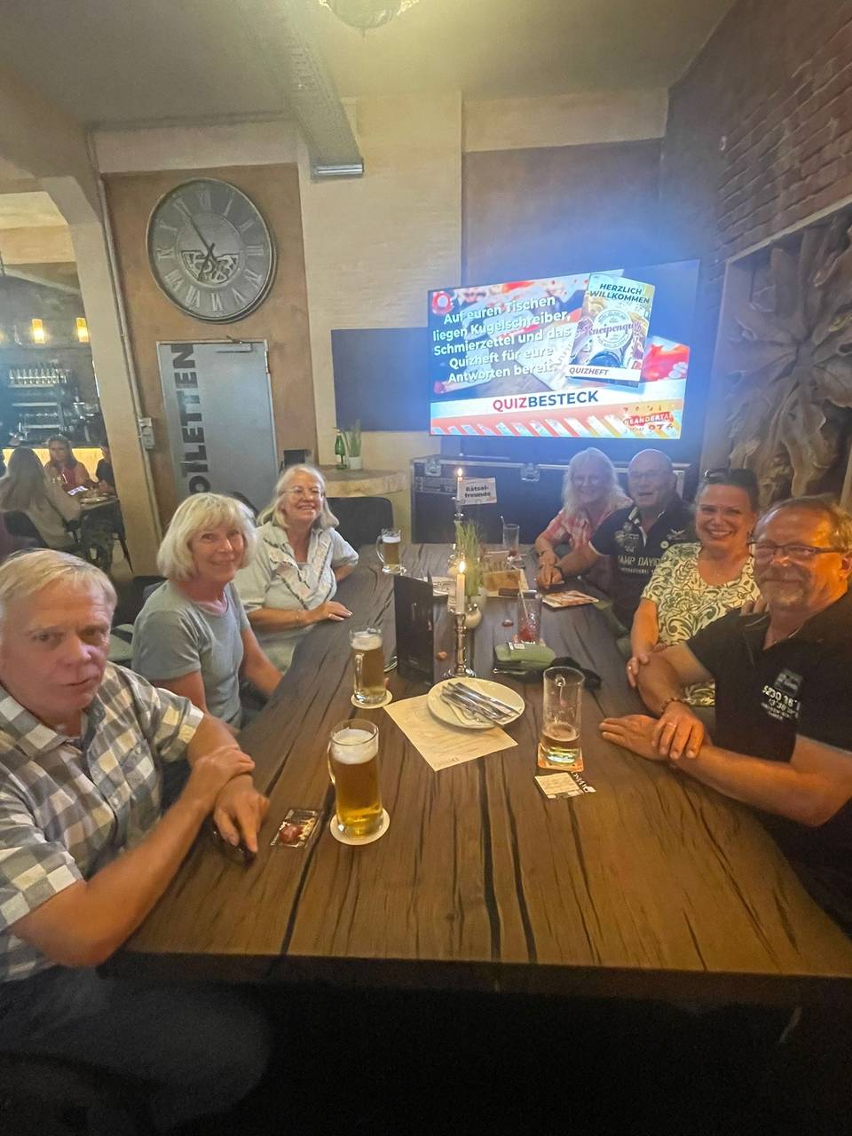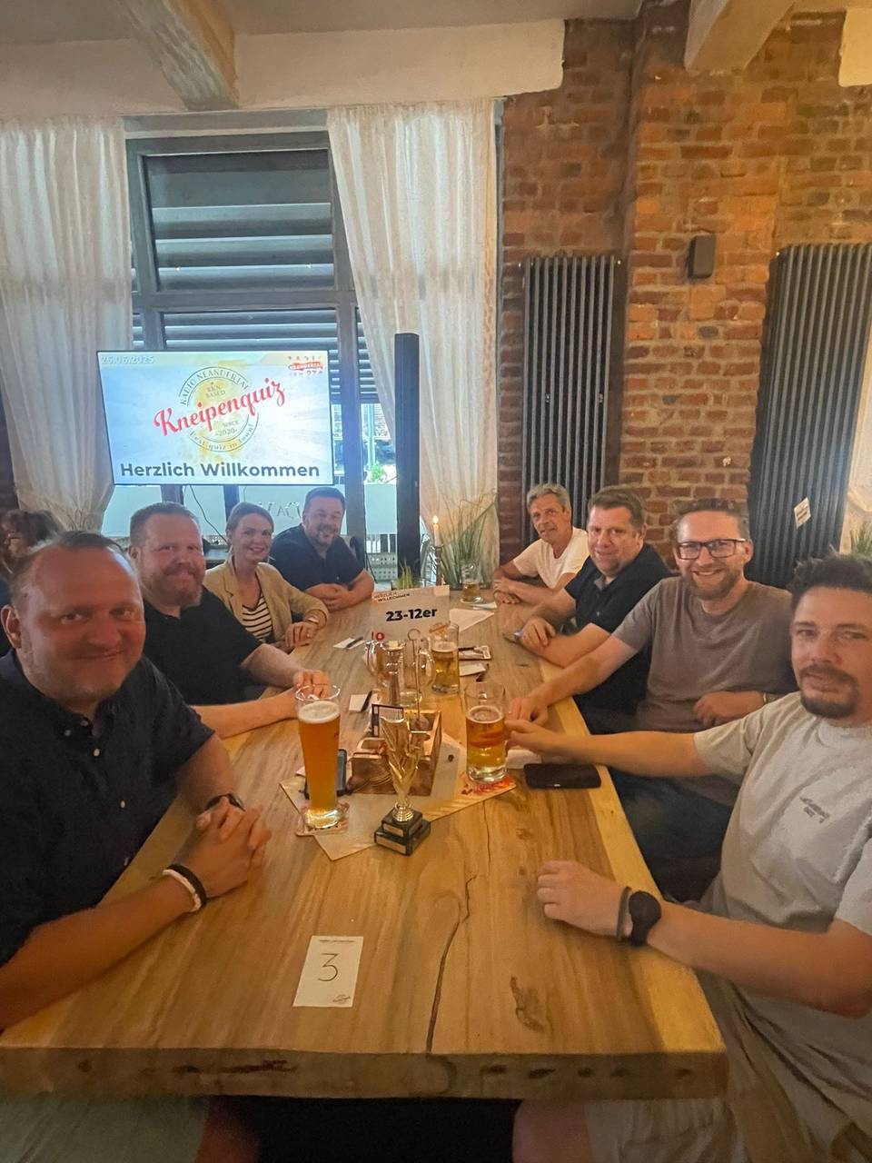 Bekannte Gesichter und viele Newcomer waren beim Kneipenquiz im Restaurant da Vinci in Velbert. Die Tickets waren in drei Minuten ausverkauft. Da musste man schnell sein. Umso mehr Spaß und knifflige Fragen gab’s dafür. Platz drei ging an die „Sechs Neunmalklugen“. Platz zwei und das war eine echte Überraschung belegte direkt beim ersten Mal das Team „Die 8 ????????“. Der Wanderpokal für den Sieger bleibt bei den Titelverteidigern: erneut belegten die „23-12er“ Platz eins. Das nächste Kneipenquiz spielen wir im September. Wir sagen euch frühzeitig Bescheid, wann und wo.