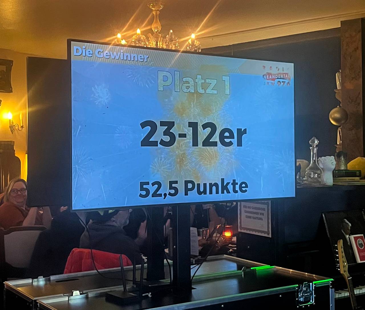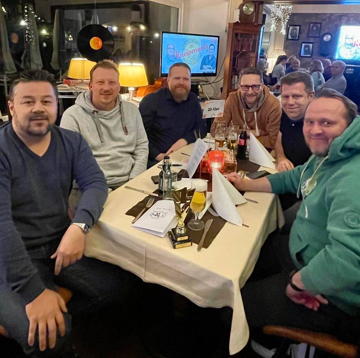 Es war auch das erste Kneipenquiz, bei dem Platz 3 durch ein Stechen ermittelt werden musste. Gleich fünf Teams lagen am Ende punktgleich auf dem dritten Platz. Am Ende landeten die „Sportfreunde“ auf Platz 3. Der zweite Platz ging an „die 6 Neunmalklugen“ und ganz knapp mit einem halben Punkt Vorsprung konnten die „23-12er“ ihren 1. Platz verteidigen. Herzlichen Glückwunsch! Wir bedanken uns bei allen, die dabei waren.