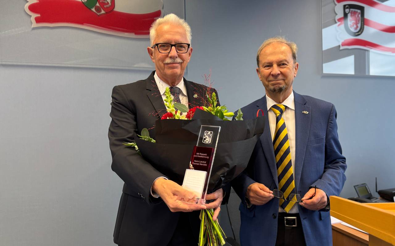 Der Kreistag Mettmann hat Landrat Thomas Hendele nach 26 Dienstjahren in der letzten Sitzung der Wahlperiode verabschiedet.
