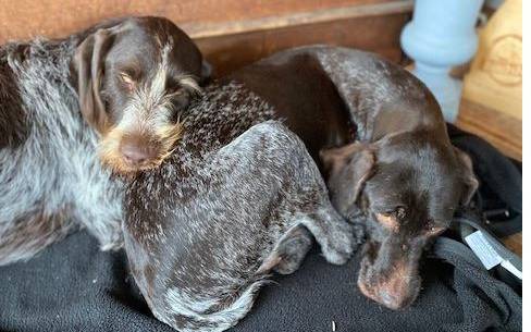 Lissy & Ben sind zwei Deutsch Drahthaar. Die beiden sind Samstagabend (18.02.2024) im Bereich Ratinger Straße/Angerweg in Heiligenhaus-Hofermühle weggelaufen.