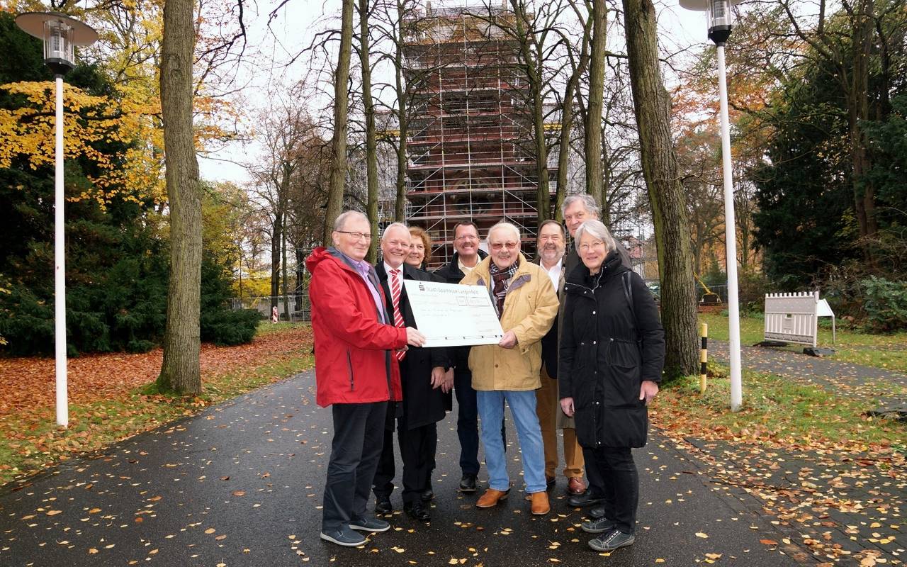 Die Stadt-Sparkasse-Langenfeld hat 10.000 Euro gespendet. Heute (22.11.) hat sie den Scheck übergeben. Die Kirche ist im Jahr 1900 gebaut worden; voraussichtlich nächsten Sommer soll sie wieder öffnen.