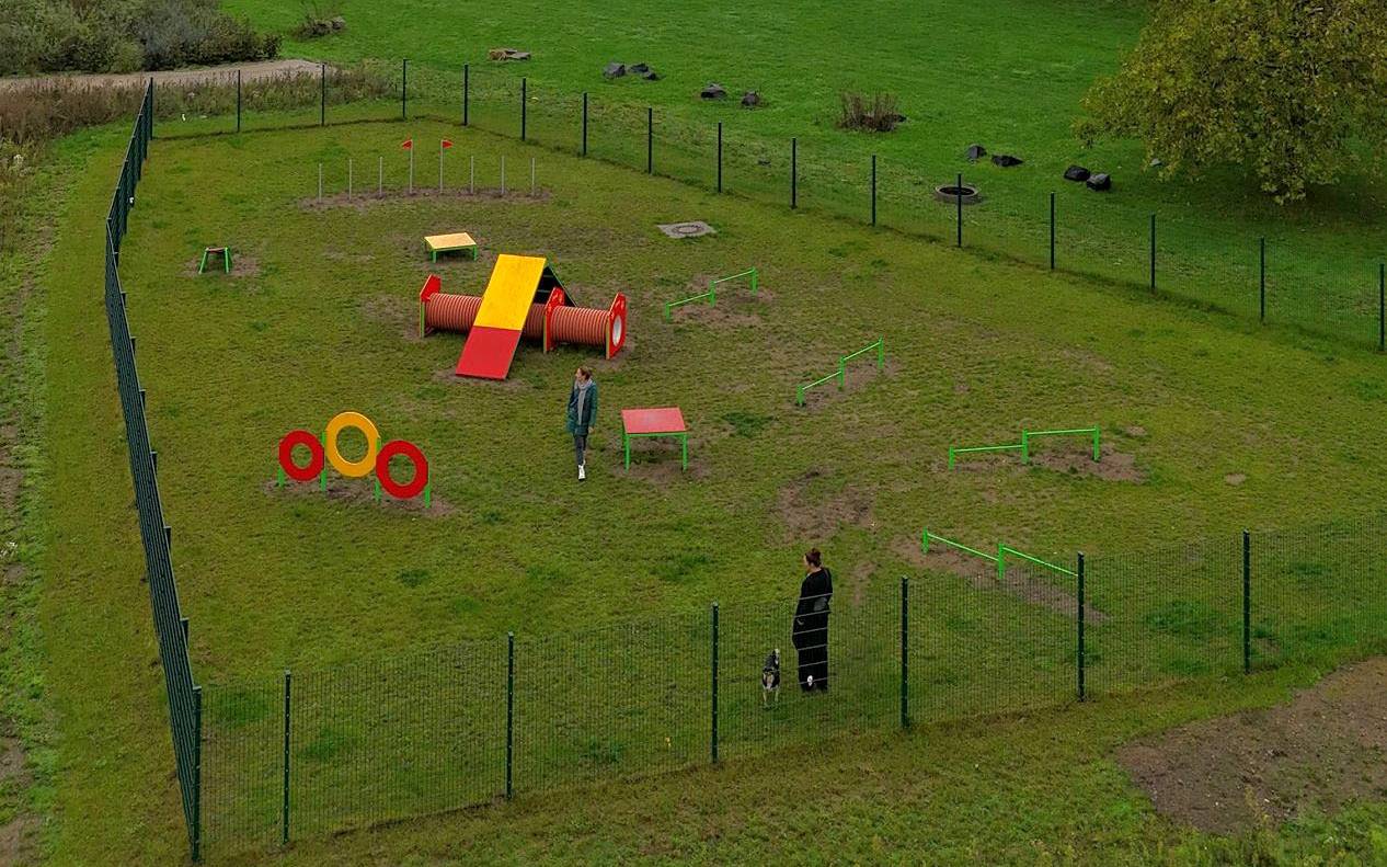 Auf rund 680 Quadratmetern können Hunde dort ab sofort toben, trainieren und spielen. Dafür sorgen neun verschiedene Geräte wie Wippe, Slalomstangen, Tunnel oder Sprungringe. Eine Rampe soll in den nächsten Wochen noch dazukommen, heißt es von der Stadt Monheim. Sie hat rund 40.000 Euro in die neue Fläche investiert und erweitert damit das Angebot an Hundespiel- und Freilaufflächen im Stadtgebiet. Weitere Wiesen gibt es unter anderem an der Ulrich-von-Hassel-Straße, der Bonhoefferstraße und entlang des Schleiderwegs.