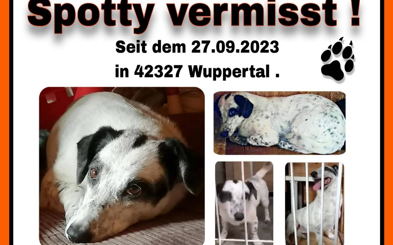 In Wuppertal wird Pflegehund Spotty vermisst. Spotty ist am 27.09. in Wuppertal-Dornap in der Nähe von Wülfrath-Düssel entlaufen.