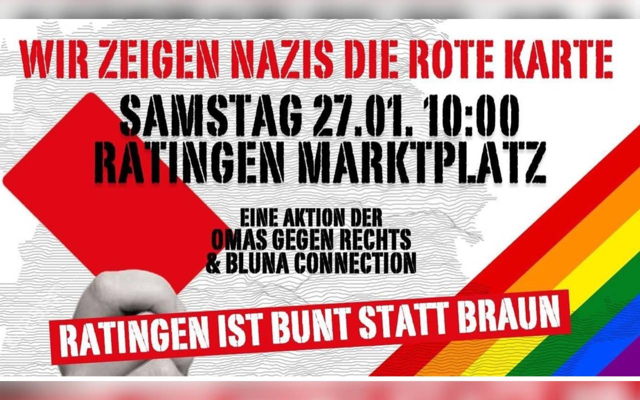 Eine Demo ist für Freitag (26.01.) in Wülfrath angemeldet worden. Hier werden bis zu 200 Teilnehmern erwartet, sagte uns ein Sprecher der Polizei im Kreis Mettmann. Die Wülfrather Demo findet ab 16:00 Uhr auf dem Heumarkt statt und steht unter dem Motto: "Wülfrath zeigt Haltung! Gemeinsam für Vielfalt, Toleranz und Demokratie". In Ratingen rufen unter anderem die "Omas gegen rechts" zur Demo auf. Dazu werden mindestens eintausend Teilnehmer erwartet. Die Demo auf dem Ratinger Marktplatz beginnt am Samstag (27.01.) um 10:00 Uhr. Das Motto hier: "Wir zeigen Nazis die Rote Karte. Ratingen ist bunt, nicht braun" demonstriert.