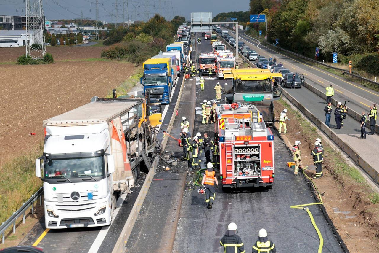 Die A59 wurde zunächst in beide Richtungen gesperrt.© Thomas Banneyer/dpa