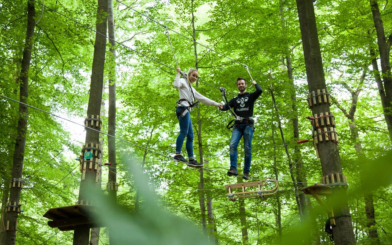 Im Waldkletterpark Velbert-Langenberg findest Du Spaß und Abenteuer für die ganze Familie. Erobere die Baumwipfel auf über 100 verschiedenen Kletterelementen für Groß und
