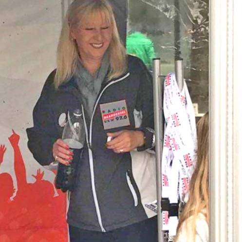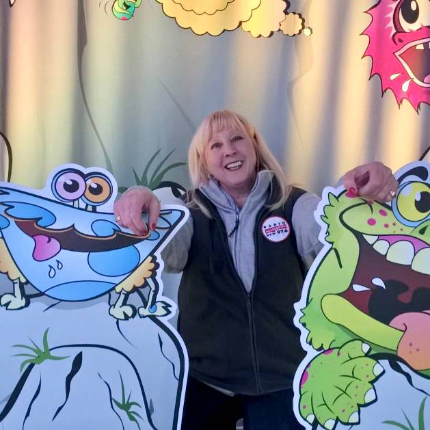 Am Telefon, mich kann man aber sogar sehen:bei Promos am Stand von Radio Neandertal.